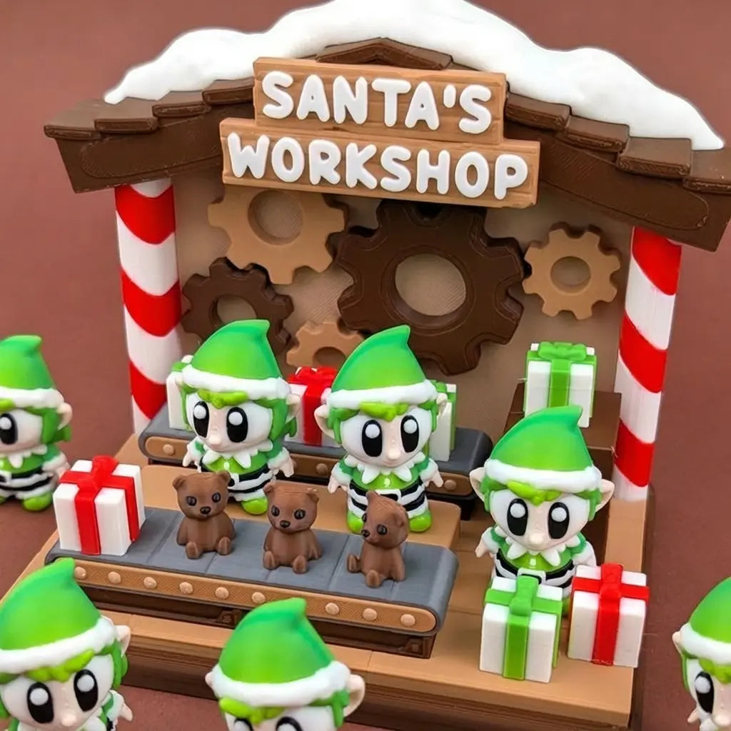 ¡Prepárate para descubrir El Taller Secreto de los Elfos, el lugar donde nacen los juguetes más especiales! Este playset recrea el taller de Santa lleno de engranajes, regalos y cintas transportadoras donde los elfos de Wompy Pals trabajan juntos preparando sorpresas con ilusión y cuidado.